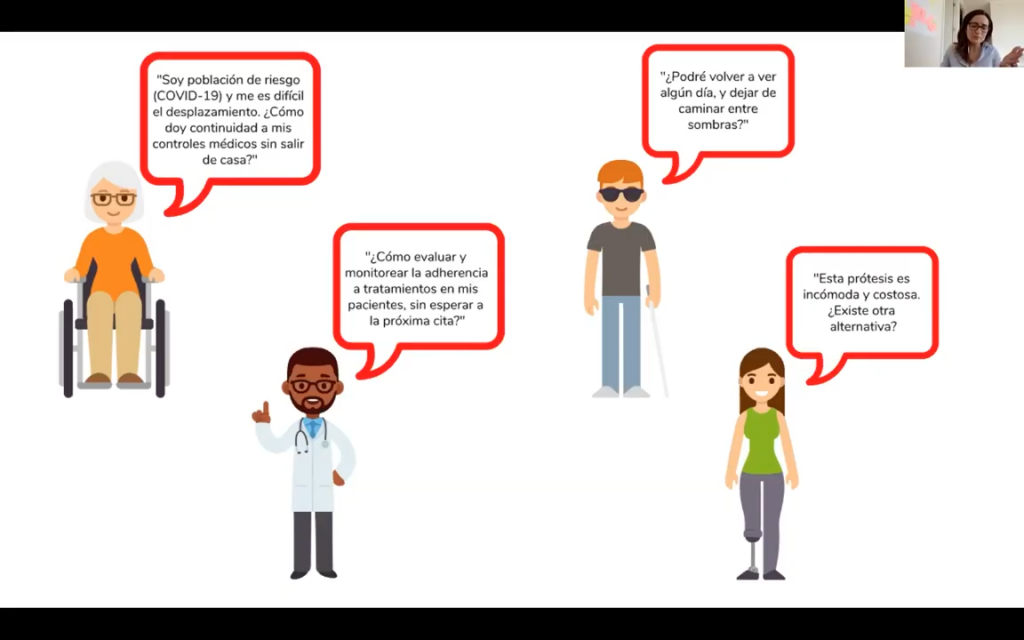 “En el sector salud no solo nos enfrentamos a la pandemia por COVID-19 lo cual supone un montón de desafíos a nivel sanitario, sino que también económico, social, educacional, logístico. Pero en el ámbito de la salud, se han generado necesidades de pacientes crónicos que no han podido darles continuidad a sus tratamientos debido a la pandemia. Ante ese escenario, nacen nuevas oportunidades para profesionales e innovadores”, apuntó la profesional para luego compartir con los asistentes algunos ejemplos de innovaciones existosas en el área.
