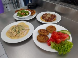 Los platos fueron cocinados por el equipo de Nutrición y Dietética de Sede Viña del Mar y la emprendedora Sandra Román, mientras la Directora de Carrera, Gabriela Lizana, fue entregando propiedades nutricionales de los ingredientes utilizados, además de responder consultas de quienes fueron parte del taller.