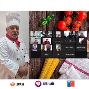La iniciativa se denominó “José y su cocina saludable”, taller en el que participó desde Colombia el chef profesional José Octavio Zapata, mientras que de manera presencial en el Laboratorio de Técnicas Dietéticas del Campus Los Castaños estuvieron la Directora de Carrera de Nutrición y Dietética de Sede Viña del Mar, Gabriela Lizana; el encargado regional del Programa de Envejecimiento Activo de Senama, Camilo Barraza; la directora general de Jubilab, Tania Vera, además de la emprendedora senior viñamarina Sandra Román, el egresado de Nutrición y Dietética UDLA Pablo López junto a las estudiantes Margot Navarro y Yanira Silva.