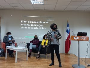 Finalmente, Carolina Peñaloza, del Colegio de Arquitectos, habló sobre el “Rol de la planificación urbana para lograr ciudades sostenibles”, las capacidades y brechas existentes en el país y las regiones. “Es urgente avanzar a ciudades más justas. Hay herramientas disponibles, pero falta coordinación, articulación y voluntades. Entre los desafíos está la integración de factores ambientales a la planificación urbana y elementos que logren disminuir la segregación”, expresó la profesional.