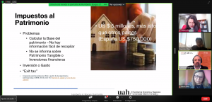 El primer expositor fue Humberto Borges, académico investigador del Centro Interdisciplinario de Políticas Públicas (CIPP) de la Universidad Alberto Hurtado, quien presentó su ponencia «Trabajos de investigación en el panorama de cambio tributario de Chile”, en el que abordó la importancia de los sistemas y normas tributarias actuales, el tema de la equidad y cómo esta ha progresado o retrocedido en diferentes períodos y determinados sectores económicos. También abordó la temática de los cambios tributarios, haciendo hincapié en que “hay dos ámbitos muy importantes de la Nueva Reforma Tributaria: los tramos más altos del impuesto global y, por otra parte, el impuesto patrimonial”. Finalmente agregó que desde la investigación “el análisis se debe hacer en cuatro dimensiones: contabilidad tributaria, estudiando casos específicos de transformación de empresas u organizaciones, diferencias entre leyes (análisis nacional e internacionalmente), efectos equitativos y efectos históricos, estudiando los efectos y beneficios por segmentación de la sociedad, así como también por zona regional y país.”