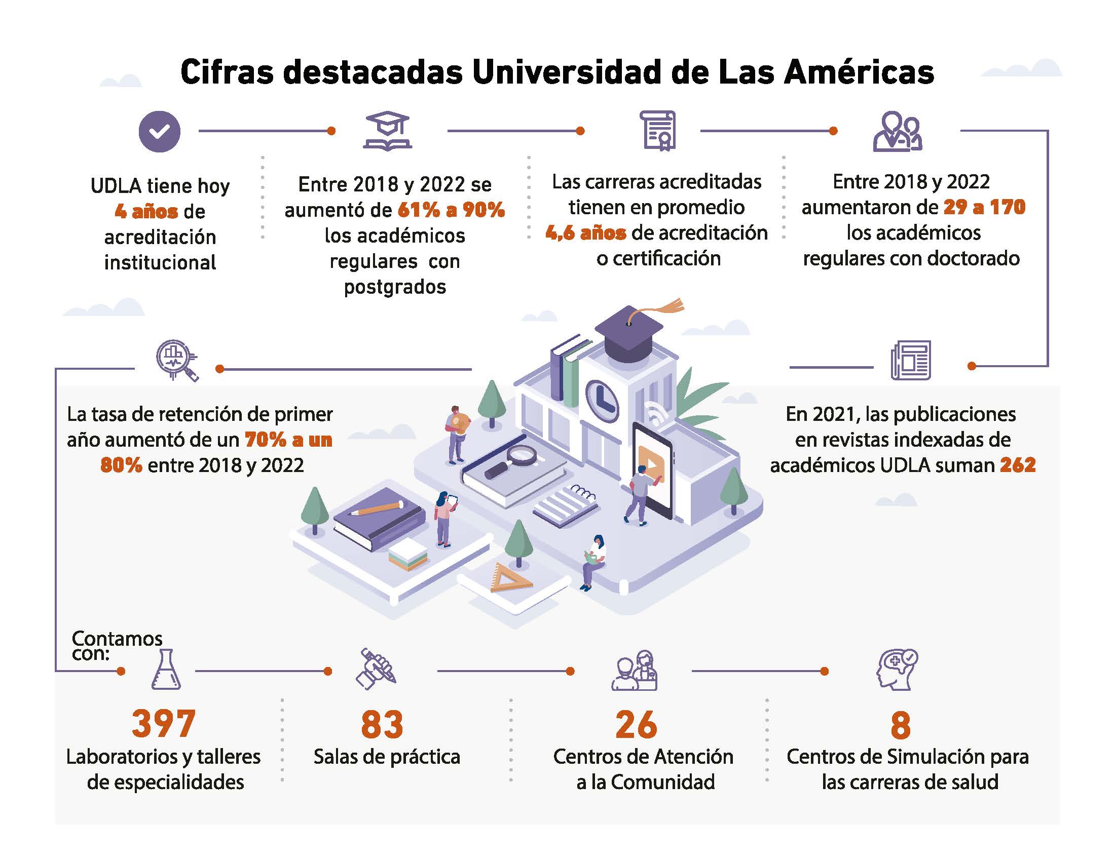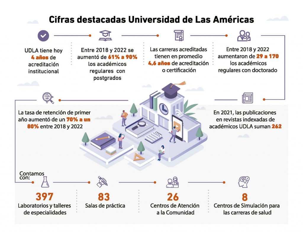 Universidad de las Américas (UDLA) comenzó en 2022 la implementación de su nuevo Plan de Desarrollo Estratégico PDE 2022-2026, de continuidad y profundización, orientado por propósitos institucionales, que abordan la consolidación de un renovado y completo programa de formación, el desarrollo e impacto de la investigación y la vinculación con el medio, todo ello en un marco de aseguramiento de calidad y garantía de sustentabilidad del proyecto institucional.