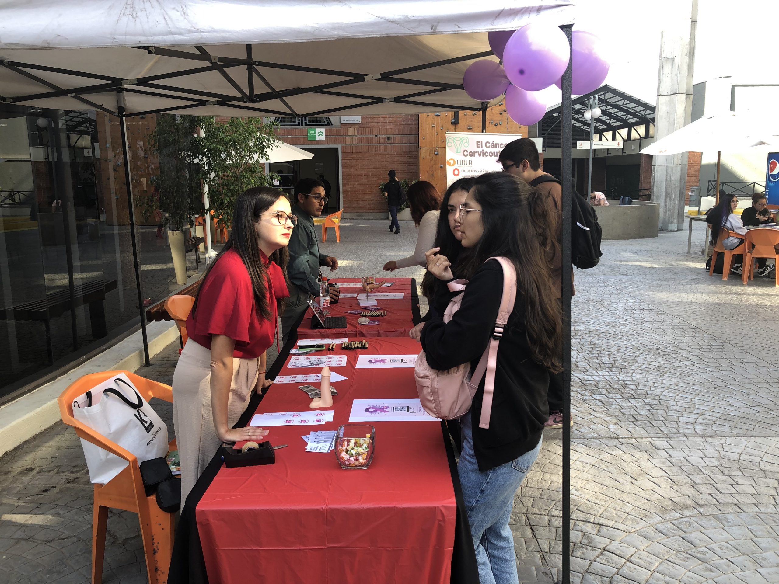 “Quisimos hacer un stand informativo para derivar mitos en torno al cáncer cervicouterino. Por ejemplo, aún muchas personas creen que es una patología heredada, y no tienen consciencia de la posibilidad de adquirirlo por transmisión sexual. Es importante hacer esta prevención con los jóvenes de la carrera y del campus”, agregó Maria José Benavides, Directora de Carrera de Obstetricia y Puericultura, quien agregó que la prevención del cáncer cervicouterino es a través de la vacunación en contra del VPH, el uso de condón y la detección oportuna a través del PAP.