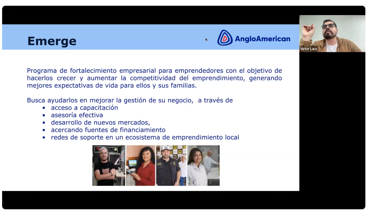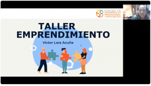 La charla estuvo liderada por Victor Lara, ingeniero comercial, Jefe regional del área de Fortalecimiento de la Corporación Simón de Cirene, quien cuenta con 4 años de experiencia en el rubro del emprendimiento trabajando con organizaciones de la sociedad civil.