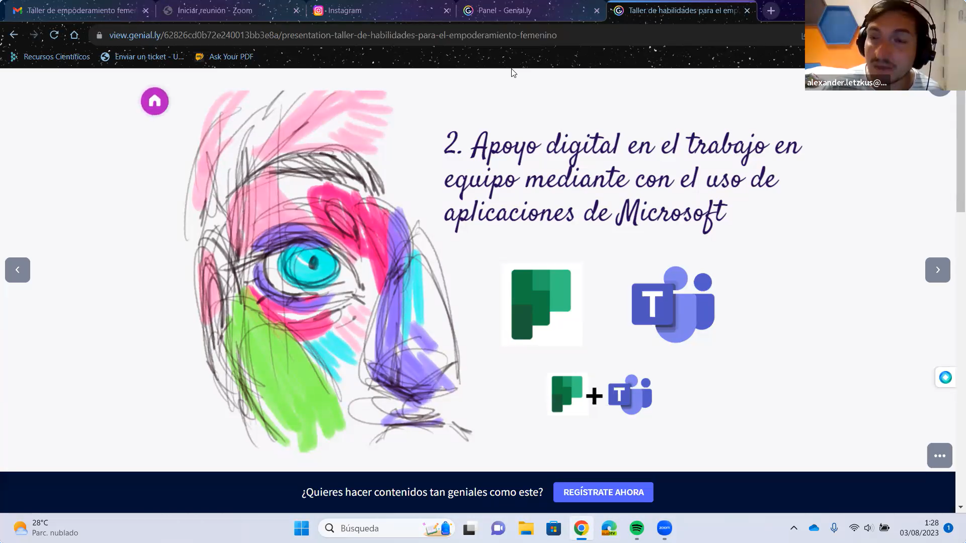 Referido al ámbito Desarrollo Profesional, el Centro de Desarrollo Profesional y Empleabilidad convocó a egresadas y estudiantes de nuestra casa de estudios al “Taller de habilidades digitales para el empoderamiento femenino”, quienes incorporaron nuevas herramientas para su ejercicio profesional y personal, complementando su perfil ciudadano digital.