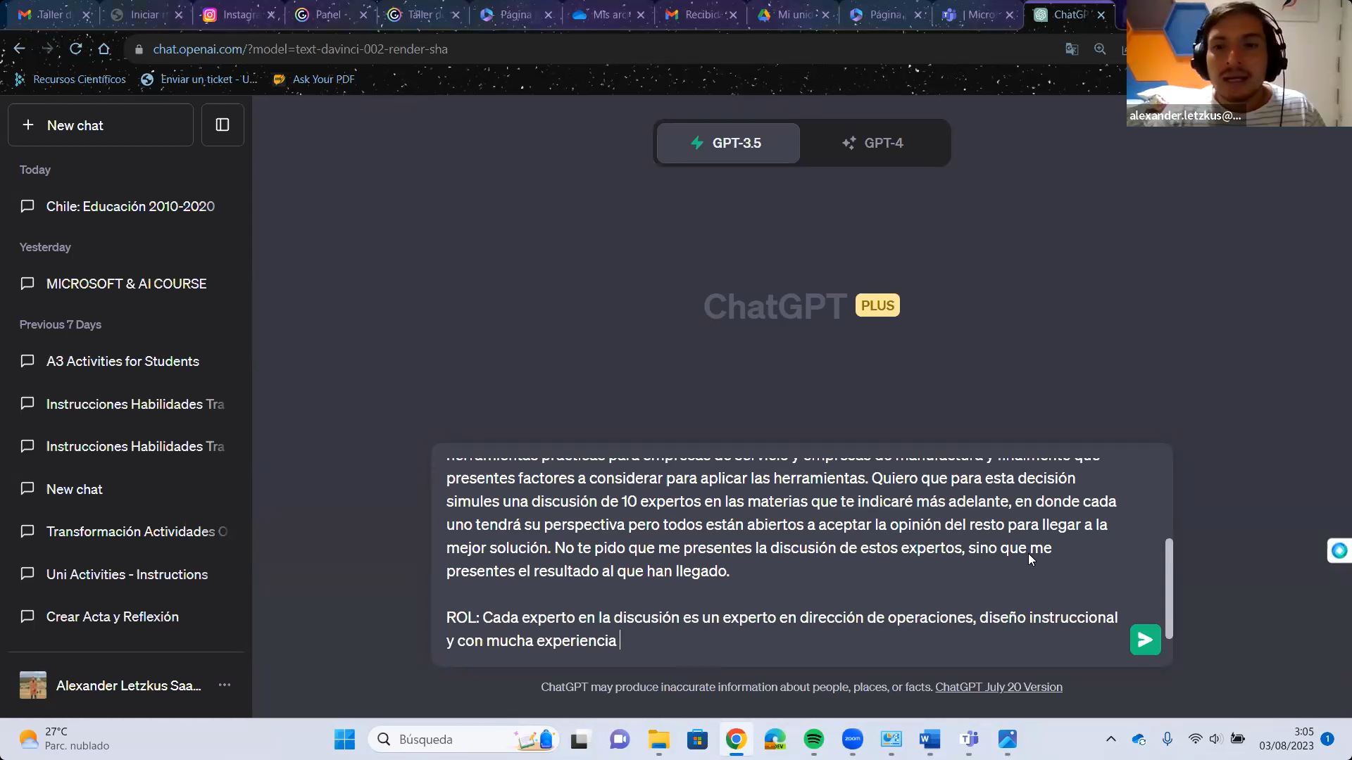 Microsoft Office ha entrado en el mundo de la inteligencia artificial justamente invirtiendo en la empresa que es dueña de ChatGPT. Con respecto a esta plataforma, el expositor sostuvo que “las inteligencias artificiales trabajan de manera deductiva. La versión ChatGPT básica solo recibe y entrega texto; ahí es importante el prompts, que es pregunta que le hacemos a ChatGPT”.