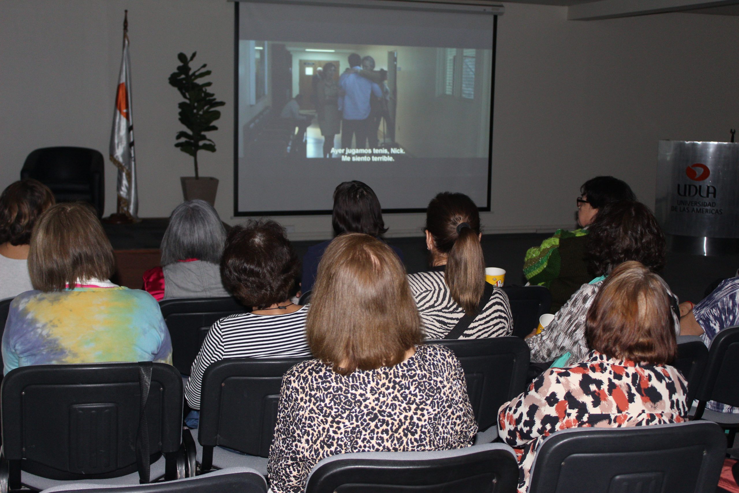 Esta actividad, parte de la iniciativa de relacionamiento comunitario de la UDLA con las personas mayores de La Florida, reunió a un nutrido grupo de asistentes en el auditorio del campus. La proyección se realizó en alta calidad, complementada con palomitas de maíz para fortalecer el aspecto cinematográfico de la instancia.