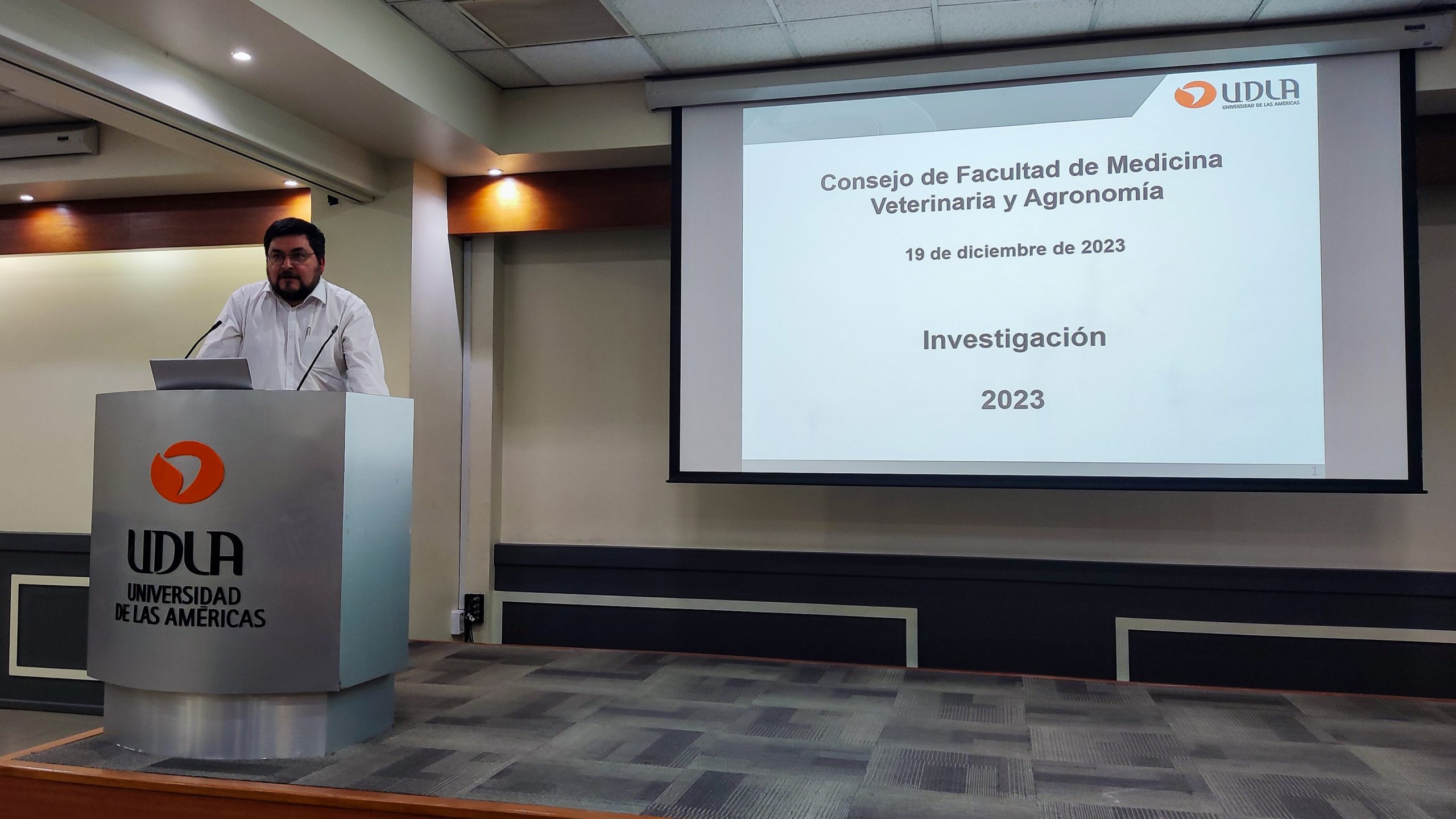 En el área de Investigación, el coordinador de investigación de la Facultad, Hernán Cañón, mencionó que, junto con el cumplimiento de los objetivos del plan de desarrollo institucional, “lo más destacable fue la adjudicación de nuestros académicos de proyectos externos FONDECYT, FIA y de INACH, junto con la creación de dos núcleos y un grupo de investigación que potenciarán aún más el trabajo colaborativo e interdisciplinario dentro de nuestra facultad”, indicando que estos avances dejan un positivo escenario institucional de cara a 2024.