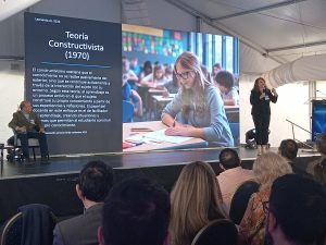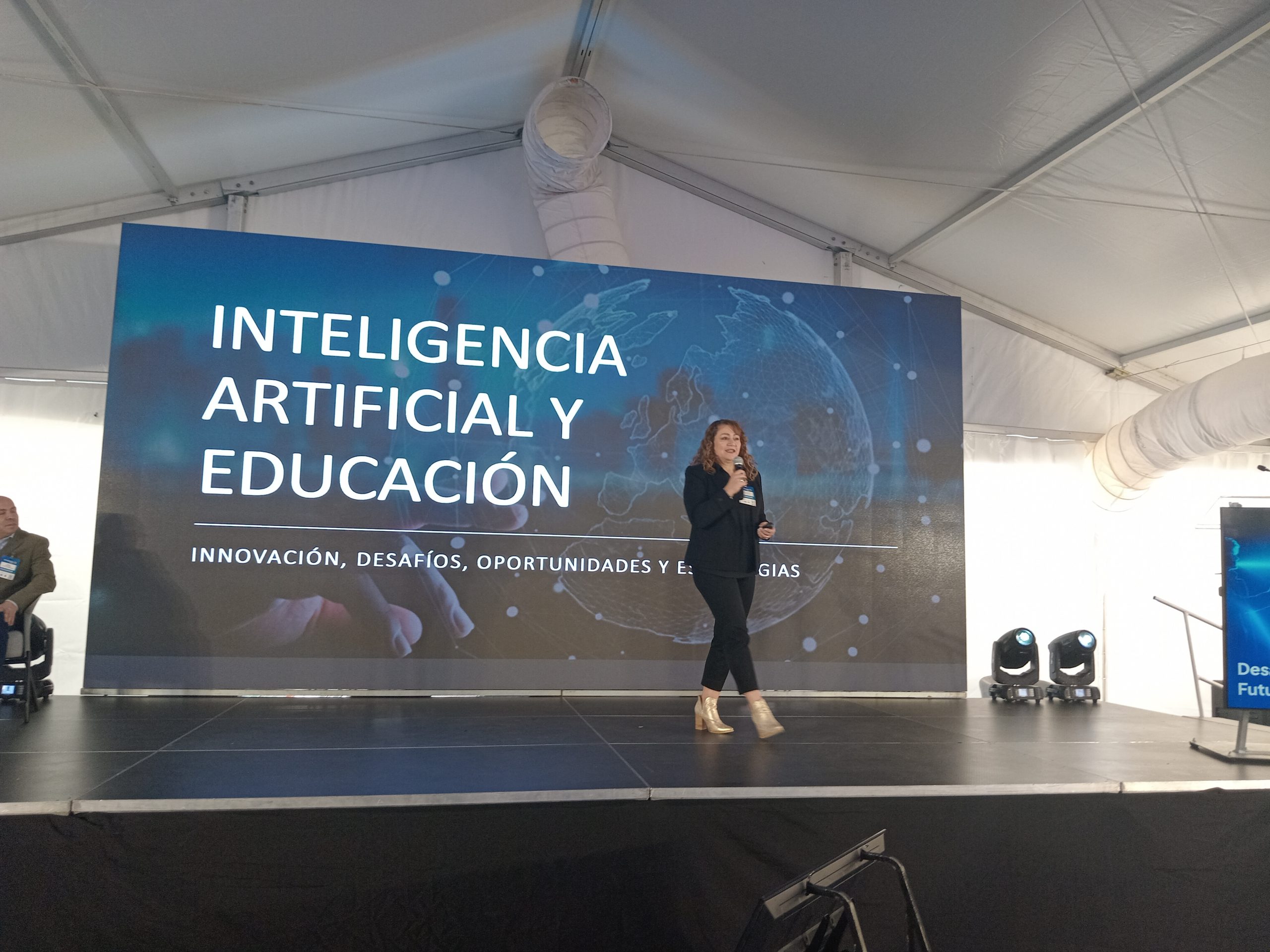 En la feria de innovación Paola Espejo, quien es candidata a Doctora en Educación y TICs de la Universitat Oberta de Catalunya (UOC), Barcelona, profesora y expositora nacional e internacional en temáticas de evaluación, didáctica, metodologías docentes en entornos virtuales, inteligencia artificial en el ámbito docente, calidad de la educación online y rol del docente en la educación digital, entre otros, presentó la ponencia “Inteligencia Artificial y Educación: innovación, desafíos, oportunidades y estrategias”, a través de la cual expuso sobre la historia de la IA, las teorías cognitivista, constructivista y del conectivismo, los modelos del lenguaje, las principales consideraciones que se necesitan saber para el uso de la Inteligencia Artificial; la relevancia de evaluar, determinar, identificar y transformar resultados, entre otros.