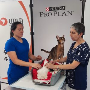 “Cada día se conocen nuevos conceptos acerca de cómo manejar la especie felina disminuyendo al mínimo el factor de estrés, ya sea para efectuar una consulta, hospitalización o tratamientos. El gato es la mascota que más acompaña a las personas en su vida, que viven más años y que poseen características particulares que los diferencia de otras especies animales, por lo que conocer su conducta normal y alterada nos dará mejores herramientas para abordarlos”, mencionó la expositora.