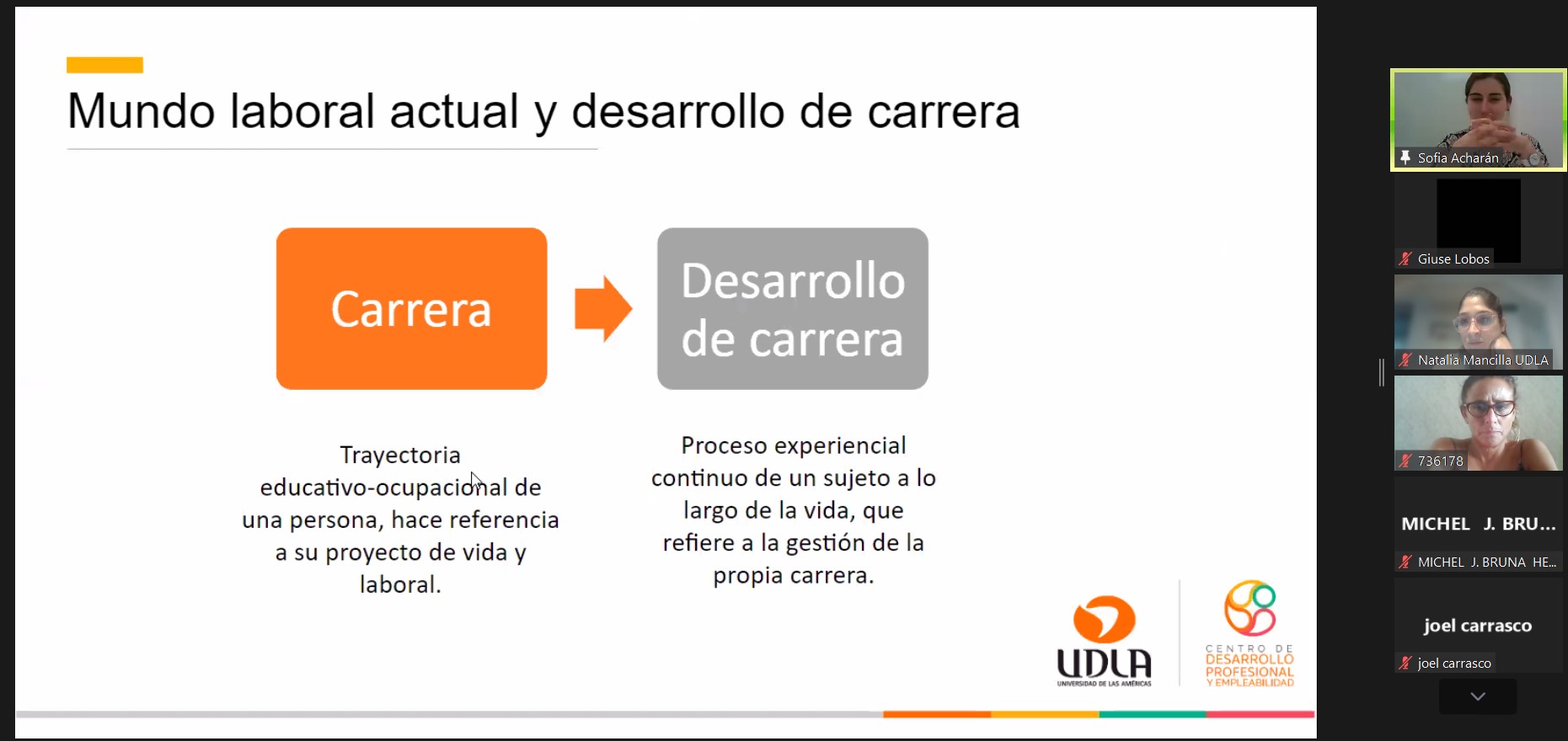Sofía Acharán, Psicóloga y Magíster en Psicología Educacional de la Universidad de Chile, explicó que “desarrollarnos en el mundo del trabajo no es algo lineal, sino que tiene que ver con un proceso experiencial, continuo a lo largo de toda nuestra vida. Somos nosotros los encargados de gestionar esa carrera y darle el rumbo que deseamos”.