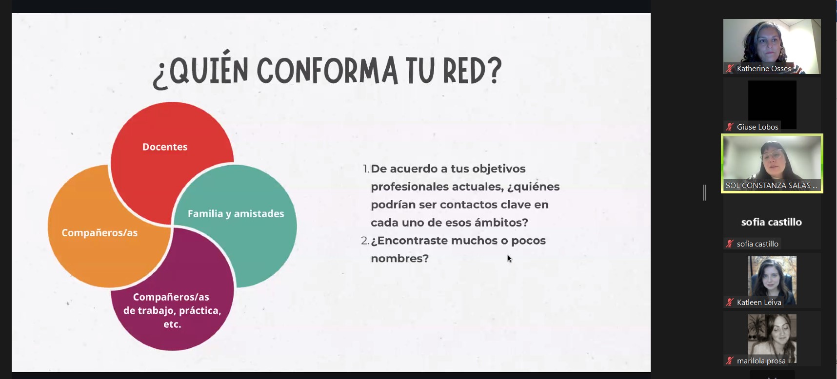 “Cuando entré a mis primeros trabajos, mis postulaciones fueron a través de las vías tradicionales, mientras que todos mis trabajos de ahora los he conseguido por medio de las redes de contacto; Existen diferentes técnicas para hacer crecer tu red de contactos, pero una de las más importantes es saber cómo presentarse, qué contar de ustedes y hacerlo de forma atractiva”, cerró la psicóloga.