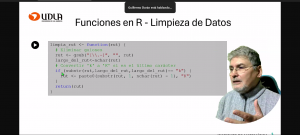 Este primer encuentro tuvo como objetivo principal enseñar a los participantes a programar funciones básicas en el lenguaje de programación R utilizando herramientas de Inteligencia Artificial generativa para la validación y limpieza de datos. Durante la sesión, Durán destacó la importancia y trayectoria de R en el ámbito de la estadística: «Esto se inicia cerca de 1993, y ya en el año 2000 se instala fuertemente. Hoy día, es un lenguaje muy importante, muy utilizado en el contexto de la estadística», explicó el académico, además de analizar detalladamente el proceso de creación de funciones en R, subrayando la relevancia de comprender la estructura y el funcionamiento interno de estas.