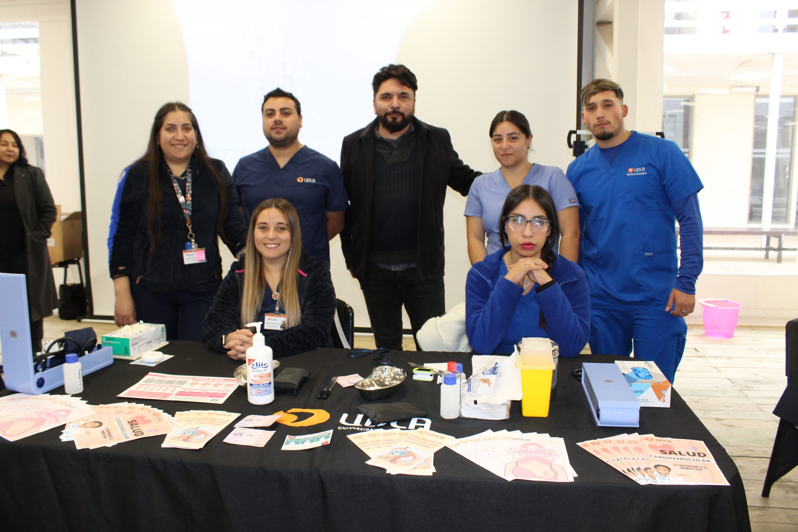 Con la participación de las carreras de la Facultad de Salud y Ciencias Sociales de Sede Viña del Mar, la carrera de Kinesiología organizó la feria de salud “Unidos por tu bienestar: prevención, cuidado y vida, acercando la salud a la comunidad”, en el marco de la conmemoración del Día Mundial de la Salud. La actividad reunió a más de 130 personas, entre estudiantes, académicos y colaboradores, quienes recorrieron los distintos stands instalados para entregar herramientas de prevención, cuidado y promoción de la salud, los que estuvieron a cargo de las carreras de Obstetricia y Puericultura, Nutrición y Dietética, Fonoaudiología, Terapia Ocupacional, Licenciatura en Ciencias de la Actividad Física, Psicología, Enfermería, Técnico de Nivel Superior en Enfermería, Kinesiología, además de la Sala de Actividad Física de Campus Los Castaños, dependiente de la Dirección de Asuntos Estudiantiles (DAE). La iniciativa tuvo como objetivo acercar a la comunidad educativa a los diversos enfoques de trabajo que desarrollan los profesionales de cada área de la salud, destacando su rol en el bienestar integral de las personas, junto con entregar información sobre los centros de atención a la comunidad disponibles en Campus Los Castaños, los servicios que entregan, a quiénes están dirigidos y cómo acceder a ellos. Durante la jornada, se realizaron intervenciones prácticas e informativas, incluyendo mediciones de signos vitales, factores de riesgo de enfermedades, de fuerza muscular; evaluaciones auditivas, orientación de salud sexual y reproductiva, entrega de recomendaciones sobre hábitos y alimentación saludables, consejos de salud mental y promoción de la actividad física, entre otras. Annette Rebolledo, académica coordinadora del Centro de Atención Kinésica de Campus Los Castaños, valoró la instancia como una experiencia colaborativa y formativa, expresando que “estamos muy contentos por esta iniciativa, pues la idea era unirnos en torno al bienestar para conmemorar el Día Mundial de la Salud y mostrar a la comunidad universitaria los roles que tenemos los distintos profesionales de la salud, lo que podemos entregar a las personas a través de la prevención, la promoción de salud, las evaluaciones o tratamientos que realizamos. Fue una actividad colaborativa, donde todas las carreras se unieron con un mismo fin de promover el bienestar y la prevención”. Javier Hernández, estudiante de tercer año de la carrera de Kinesiología, comentó que “me pareció súper buena la actividad, ya que podemos poner en práctica lo que nosotros hemos estado viendo durante todos estos años de formación y también sirve para toda la Universidad. Que se generen estas instancias es súper importante para promover la salud y también para nosotros como alumnos para saber cómo está la comunidad, ver cómo intervenir y colaborar para promover una buena salud”. Isidora Carrizo, estudiante de segundo año de Obstetricia y Puericultura, dijo “me gusta mucho que se hagan estas actividades, pues podemos aprender nuevas cosas de otras carreras y ver sus servicios disponibles para los estudiantes. Como carrera enseñamos sobre las infecciones de transmisión sexual y los métodos de prevención disponibles. Es primera vez que participamos en una feria como carrera, con muchas ganas de aprender y entusiasmadas por el trabajo conjunto con otras disciplinas de la salud”.