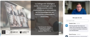 Durante su exposición, el académico presentó una reflexión profunda sobre el potencial de la indagación dialógica como enfoque metodológico para promover la colaboración entre matemáticos y educadores. “El título de la presentación es la indagación dialógica como metodología por la colaboración en