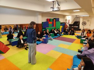 Natalia Cancino, académica de la Escuela de Terapia Ocupacional de UDLA y experta en psicomotricidad, lideró la clase-taller “Juego y Familia: Interacciones para el Desarrollo Infantil”, realizada en la Universidad Alberto Hurtado (UAH) para estudiantes de segundo año de la carrera de Educación Parvularia.