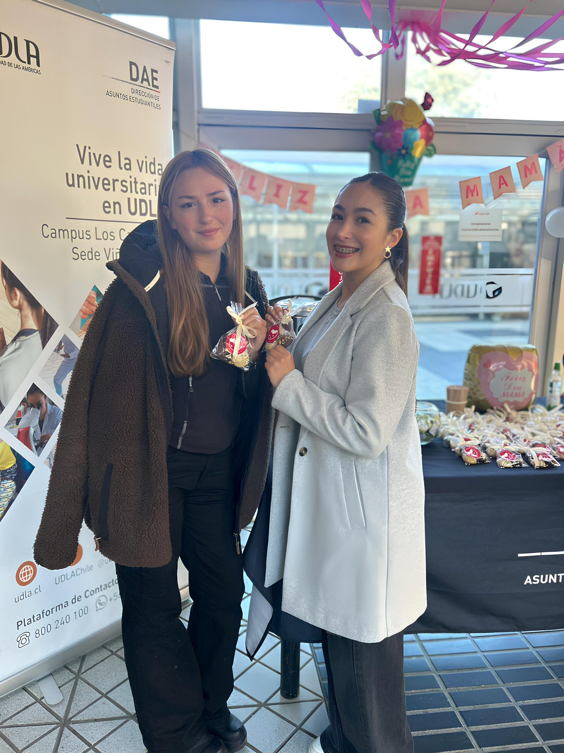 Con actividades orientadas al bienestar, la convivencia y el reconocimiento, la Dirección de Asuntos Estudiantiles de Sede Viña del Mar (DAE) organizó jornadas de celebración para conmemorar el Día del Alumno y el Día de la Madre, dirigidas a estudiantes de todas las carreras y regímenes del Campus Los Castaños. La conmemoración del Día de la Madre incluyó la instalación de un stand durante las jornadas Diurna y Vespertina- Executive, como una instancia de acercamiento y reconocimiento a las alumnas que son madres, a quienes se les entregó un pequeño obsequio como muestra de aprecio por los roles que a diario desempeñan. En tanto, el Día del Alumno se celebró con actividades recreativas, juegos y dinámicas en ambas jornadas, fomentando la participación y el compañerismo. En la oportunidad también se entregaron barras de cereal, jugos, algodón de azúcar y palomitas de maíz para los asistentes. Catalina Rusowsky, estudiante de quinto año de la carrera de Medicina Veterinaria Executive, valoró la iniciativa, comentando que “son muy agradables estas actividades, es un break en el camino. Participé también del Día de la Madre y se lo agradecí mucho a los chicos, porque siempre están preocupados de nosotras. Me parece muy bien que hagan estas actividades y es un agrado que nos tengan en cuenta también a los alumnos de esta jornada”. Por su parte, Mariangel Páez, estudiante de segundo año de la carrera de Psicología, destacó el impacto positivo de la celebración del Día del Alumno. “Me pareció muy interesante porque hace que todos los estudiantes estemos interactuando y además ayuda a activar más el sentido de pertenencia a la Universidad. Me parecen muy bonitas estas actividades porque uno puede conectar con ese lado que le hace sentir el por qué estoy acá estudiando. La celebración de nuestro día, con dinámicas y juegos, hace que salgamos de nuestra zona de confort y el estudio, que interactuemos y nos distraigamos”. Junto con estas celebraciones, la DAE, a través del área de Bienestar Estudiantil, desarrolló otras acciones destinadas al cuidado y acompañamiento de los estudiantes, como el “Café con calma”, realizado en la Plaza Los Faroles, que ofrece un espacio de relajación y conversación para promover la salud mental, junto con la entrega de café, té o chocolate caliente e información del Programa de Bienestar Estudiantil. A esto se suma “Tómate un café con DAE”, una instancia pensada para generar encuentros y espacios de cercanía entre los equipos de la DAE y la comunidad estudiantil. Claudia Suárez, Directora de Asuntos Estudiantiles de Sede Viña del Mar, destacó que “estas actividades permiten acompañar a nuestros estudiantes más allá de lo académico. Buscamos generar espacios de encuentro que fortalezcan su sentido de pertenencia y bienestar, reconociendo también sus distintas realidades, como es el caso de las alumnas que son madres. Este tipo de acciones refuerza nuestro compromiso con una formación integral, donde lo emocional, lo social y lo humano también son parte del proceso educativo”.