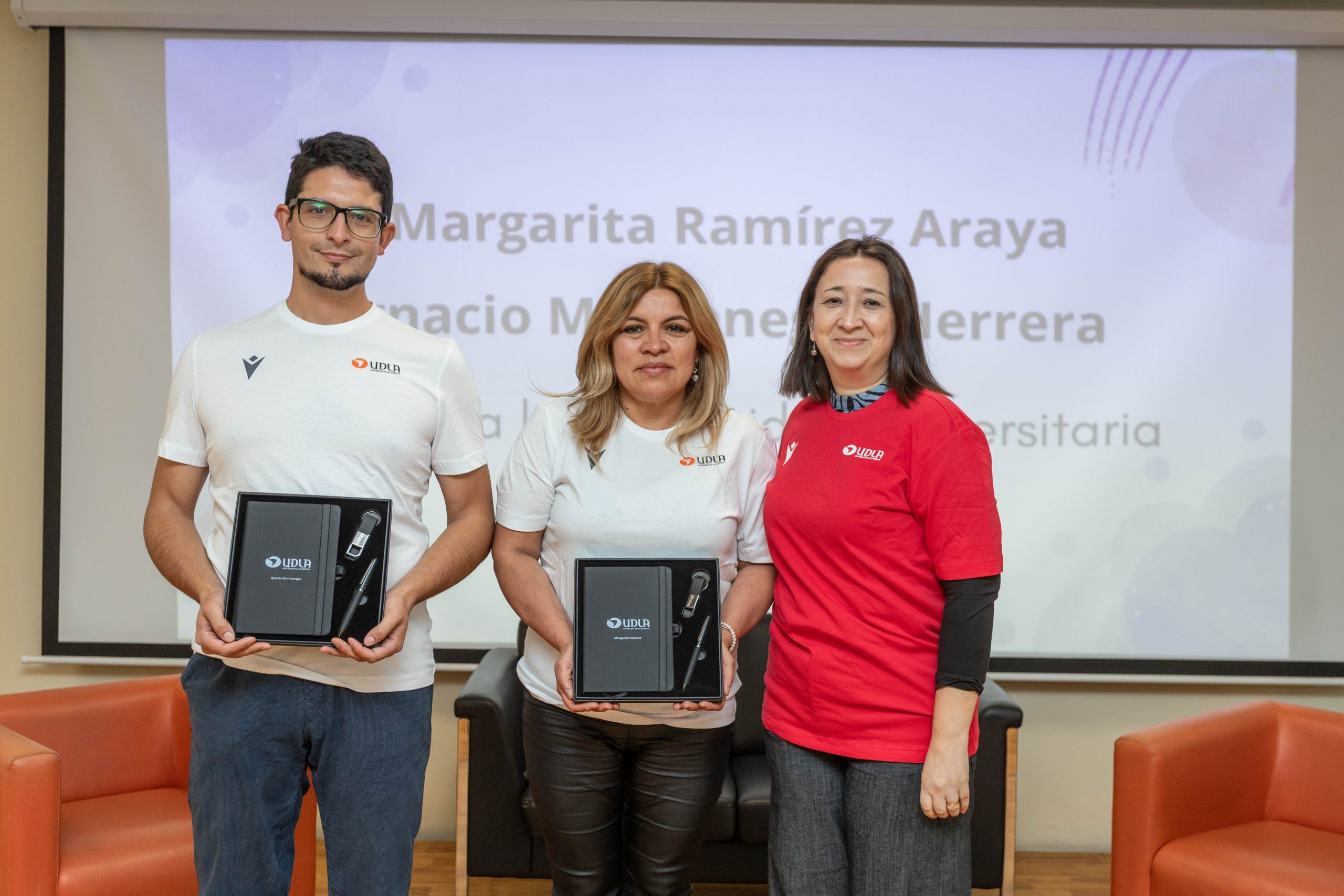 En Sede Viña del Mar se llevó a cabo la Ceremonia de Reconocimiento a Estudiantes Destacados, organizada por la Dirección General de Asuntos Estudiantiles (DAE) junto al equipo del Campus Los Castaños, actividad que tuvo como objetivo destacar a alumnos que han demostrado un alto nivel de compromiso, colaboración, entusiasmo y dedicación durante su trayectoria académica. A la instancia asistieron autoridades como David Campodónico, Director General de Asuntos Estudiantiles; Daniela Velázquez, Directora Académica del Campus Los Castaños; Claudia Suárez, Directora de Asuntos Estudiantiles del mismo campus; y Michelle Bass, Directora General de Sede Online, además de directores de carrera y otros invitados. En la oportunidad, los estudiantes fueron homenajeados con un obsequio y una polera institucional. Compartieron sus experiencias personales en su proceso formativo, a lo que se sumaron las palabras de sus directores de carrera, quienes resaltaron el impacto positivo de sus acciones en la comunidad universitaria. Se reconocieron cuatro categorías. La primera fue “Aporte a la Comunidad Universitaria”, que distinguió a quienes han participado activamente en proyectos con impacto social, voluntariado o campañas solidarias. Fueron premiados Margarita Ramírez e Ignacio Montenegro Herrera, estudiantes de Psicología Executive, por el proyecto “La Salud Mental se Conversa”, un podcast sobre salud mental que se adjudicó el Fondo Concursable DAE. La categoría “Mentoría y apoyo entre pares” destacó a estudiantes que han acompañado a sus compañeros en su proceso formativo. George Macuada, de Ingeniería Comercial Executive, fue reconocido por su disposición constante y liderazgo en las acciones de apoyo de UDLA durante los incendios de febrero de 2024 en la Región de Valparaíso. También fue premiada Inari Pino, de Terapia Ocupacional Diurno, por su compromiso y responsabilidad en el programa de mentorías. En la categoría “Participación en Vida Universitaria” fueron destacadas María José Aguirre, estudiante de Técnico de Nivel Superior en Administración de Empresas online, y Elena Fuentes, de Ingeniería en Ejecución en Administración de Empresas online, por su colaboración en iniciativas impulsadas por la Dirección de Asuntos Estudiantiles. La última categoría, “Espíritu Deportivo”, reconoció a Elda Igor, estudiante de Terapia Ocupacional Vespertino, y a Aaron Quiroz, de Kinesiología Diurno, por representar los valores del deporte universitario a través del trabajo en equipo, la disciplina, el liderazgo y la perseverancia. Durante la ceremonia, Daniela Velázquez valoró la oportunidad de reconocer a los estudiantes, destacando que “estas instancias permiten detenerse en medio de las responsabilidades académicas para agradecer la energía, el sentido de comunidad y el compromiso de los alumnos. Los reconocimientos entregados reflejan una forma de vivir la Universidad desde la participación, la solidaridad y el respeto, elementos clave en la formación integral que promueve UDLA”. Por su parte, David Campodónico afirmó que “los estudiantes premiados representan los valores que la institución desea impulsar. Desde la Dirección de Asuntos Estudiantiles continuaremos trabajando para fortalecer los servicios y herramientas disponibles para los alumnos, fomentando el orgullo, respeto y compromiso con la Universidad. Agradezco a quienes fueron reconocidos y los insto a convertirse en agentes de cambio dentro y fuera de la comunidad educativa”. Ignacio Montenegro dijo «estoy muy contento y orgulloso de haber sido destacado por nuestro trabajo en salud mental. Además, agradezco profundamente a la Universidad, porque este campus me ha enriquecido tanto en lo humano como en lo profesional. Estas instancias de reconocimiento son un compromiso para la vida, para la universidad y para la comunidad». Elena Fuentes comentó que «para mí fue una gran sorpresa este desayuno. Estoy feliz por el reconocimiento, porque es muy importante para quienes estudiamos en modalidad online. Muchas veces somos trabajadores, jefas de hogar, y estudiamos de noche. No es fácil, pero es muy significativo. Seremos embajadores para otros estudiantes y para quienes se animen a seguir estudiando. Gracias por este hermoso gesto». Aaron Quiroz expresó que “me parecen maravillosas las cosas que ha estado haciendo la Universidad. Estoy agradecido de corazón por esta ceremonia y por la oportunidad de conocer a otros compañeros. Con actividades como esta se incentiva a los estudiantes a seguir creciendo, como personas y como profesionales». Margarita Ramírez, comentó que «este reconocimiento es un orgullo para mí. Estoy feliz de haber estudiado Psicología y de estar cerca de terminar una carrera tan hermosa. He crecido más de lo que imaginé, esta etapa ha sido transformadora. Llevo esta experiencia en mi corazón y me siento orgullosa de haber elegido esta Universidad, que se convirtió en mi segunda casa». Finalmente, la Directora de Asuntos Estudiantiles, Claudia Suárez, destacó que “los estudiantes reconocidos representan el espíritu UDLA, ya que a través de sus acciones reflejan los sellos valóricos de la institución, además de la responsabilidad social, el trabajo colaborativo y el compromiso con su entorno. Son referentes positivos para sus compañeros y para toda la comunidad educativa”.