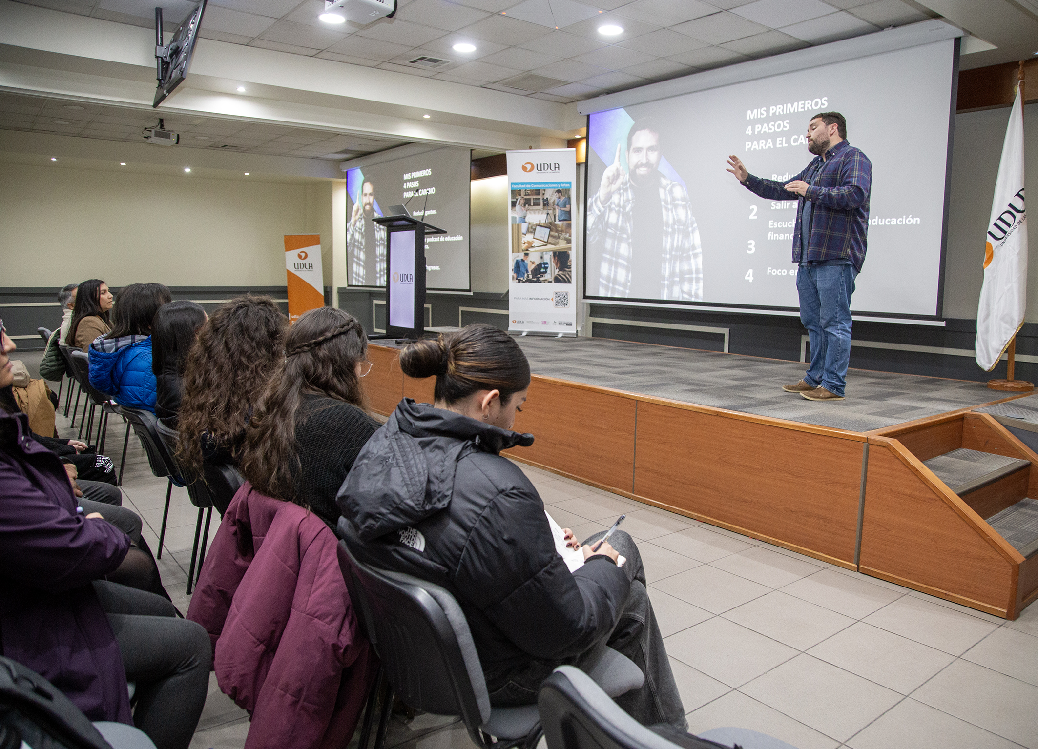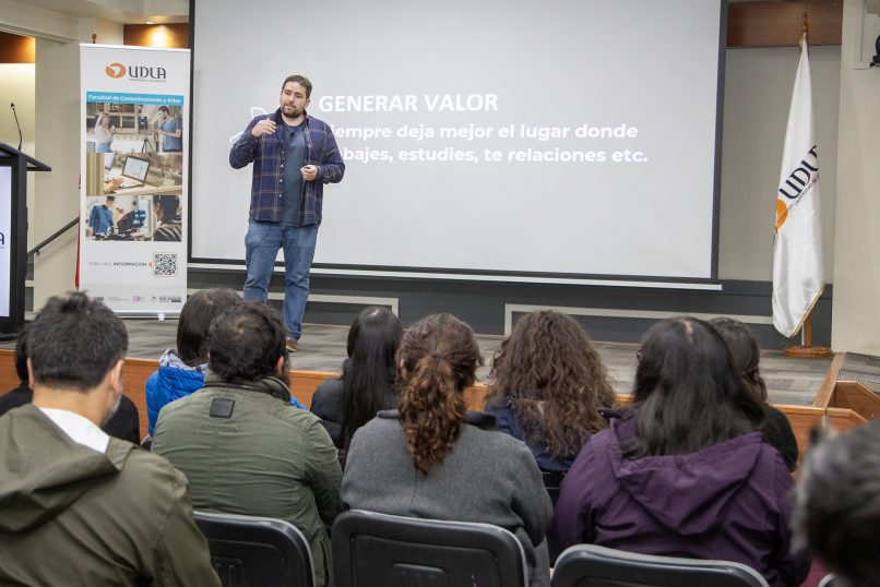 La actividad tuvo como invitado principal al ingeniero comercial, emprendedor y educador financiero Francisco Ackermann, creador del libro y podcast “Con Peras y Finanzas”, quien dictó una charla sobre educación financiera, ahorro, emprendimiento y sostenibilidad económica en contextos de incertidumbre laboral.