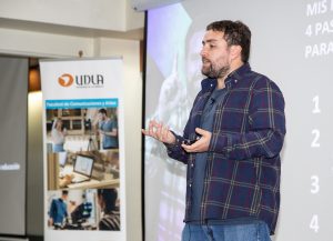 Junto a Rozas, participaron Maciel Campos, Director de Escuela de Publicidad y Relaciones Públicas, e Ignacio Pérez Tuesta, Director de Escuela de Periodismo y Comunicaciones, quien se conectó vía Zoom.