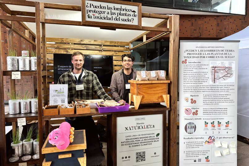 Esta actividad realizada en el Centro Cultural Gabriela Mistral (GAM) contó con un stand que invitaba a «ver el suelo con otros ojos», el investigador Tomás Schoffer, presentó a los asistentes su estudio «¿Pueden las lombrices de tierra proteger a las plantas de la toxicidad por cobre en el suelo?», dirigido a demostrar cómo estos organismos, llamados «ingenieros del suelo», en el marco de su proyecto Fondecyt Postdoctoral 3220026, podrían ser clave para mitigar un problema crítico en la agricultura chilena: la acumulación de cobre por el uso excesivo de pesticidas.