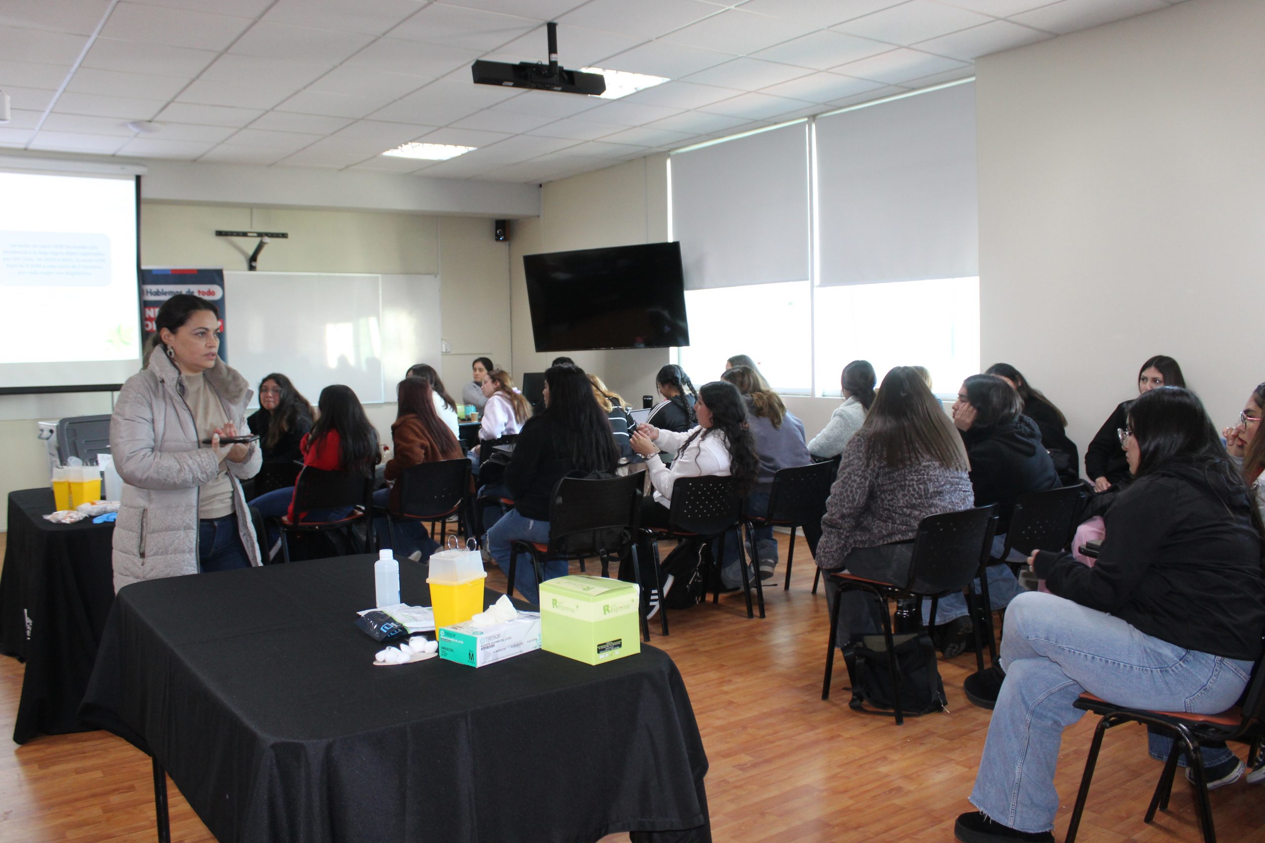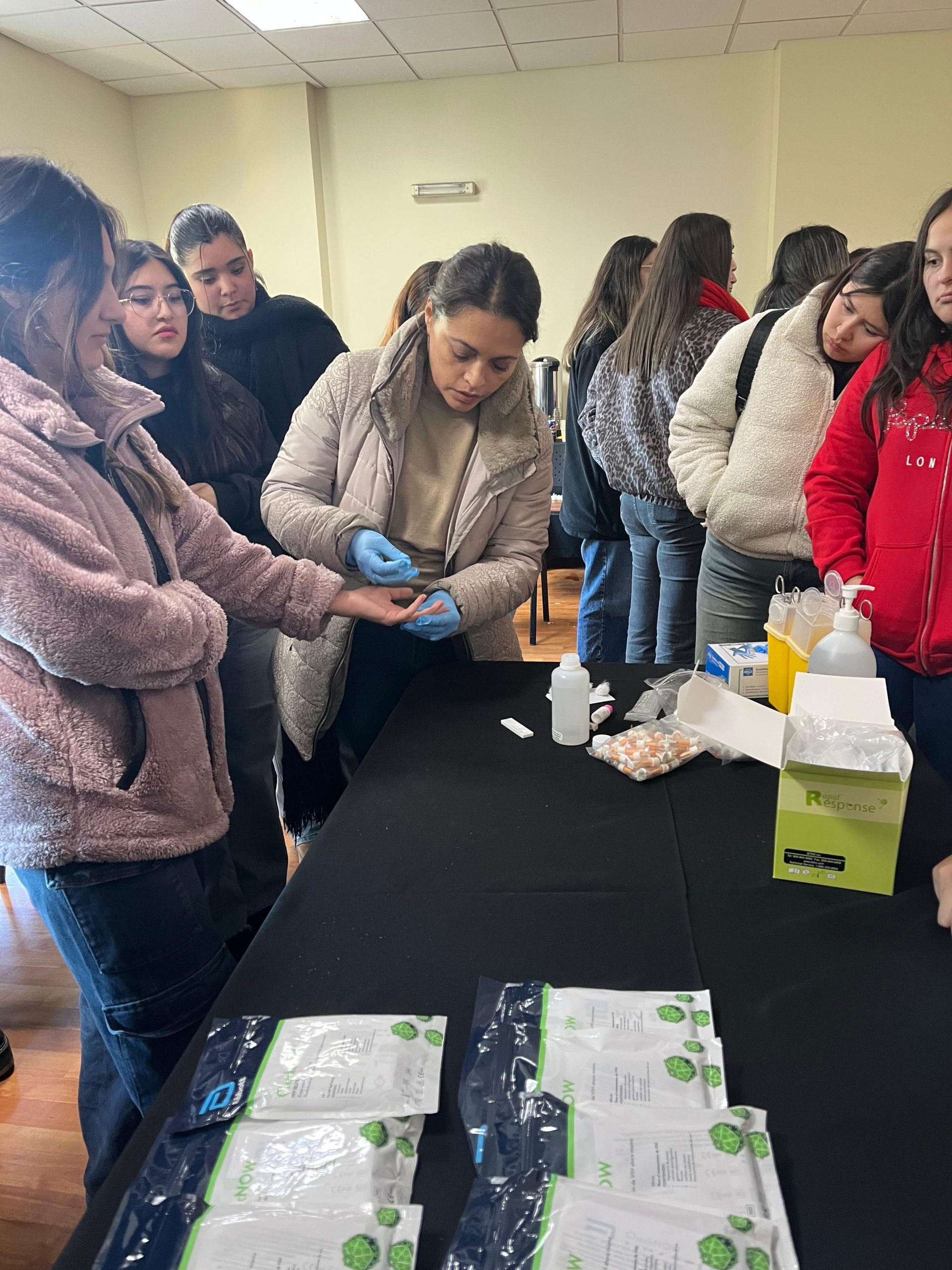 El espacio abordó contenidos sobre prevención y detección temprana del VIH, incorporando el uso práctico de pruebas rápidas y autotest, con énfasis en su aplicación, lectura e interpretación, conocimientos que buscan fortalecer el proceso formativo de los estudiantes, entregándoles herramientas pertinentes para su futuro ejercicio profesional.