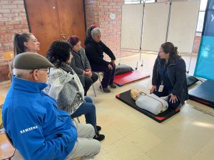En la comuna de María Pinto se realizó el cierre del ciclo de capacitaciones para personas cuidadoras. En la jornada, se impartieron talleres de primeros auxilios, técnicas de relajación y movilización y reanimación cardiopulmonar, con la colaboración de las escuelas de Enfermería, Kinesiología y Licenciatura en Ciencias de la Actividad Física.