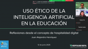 La ponencia, titulada “Uso ético de la Inteligencia Artificial en educación. Reflexiones desde el concepto de hospitalidad digital”, fue presentada en España en el Elearning Experience 25, organizado por Samoo by Pentec en Valencia y en el Ciclo de Webinars de FAD Juventud y Conecta13. Además, en las Jornadas uLearnet 2025, impulsadas por el Programa GSCA de la Universidad de Chile