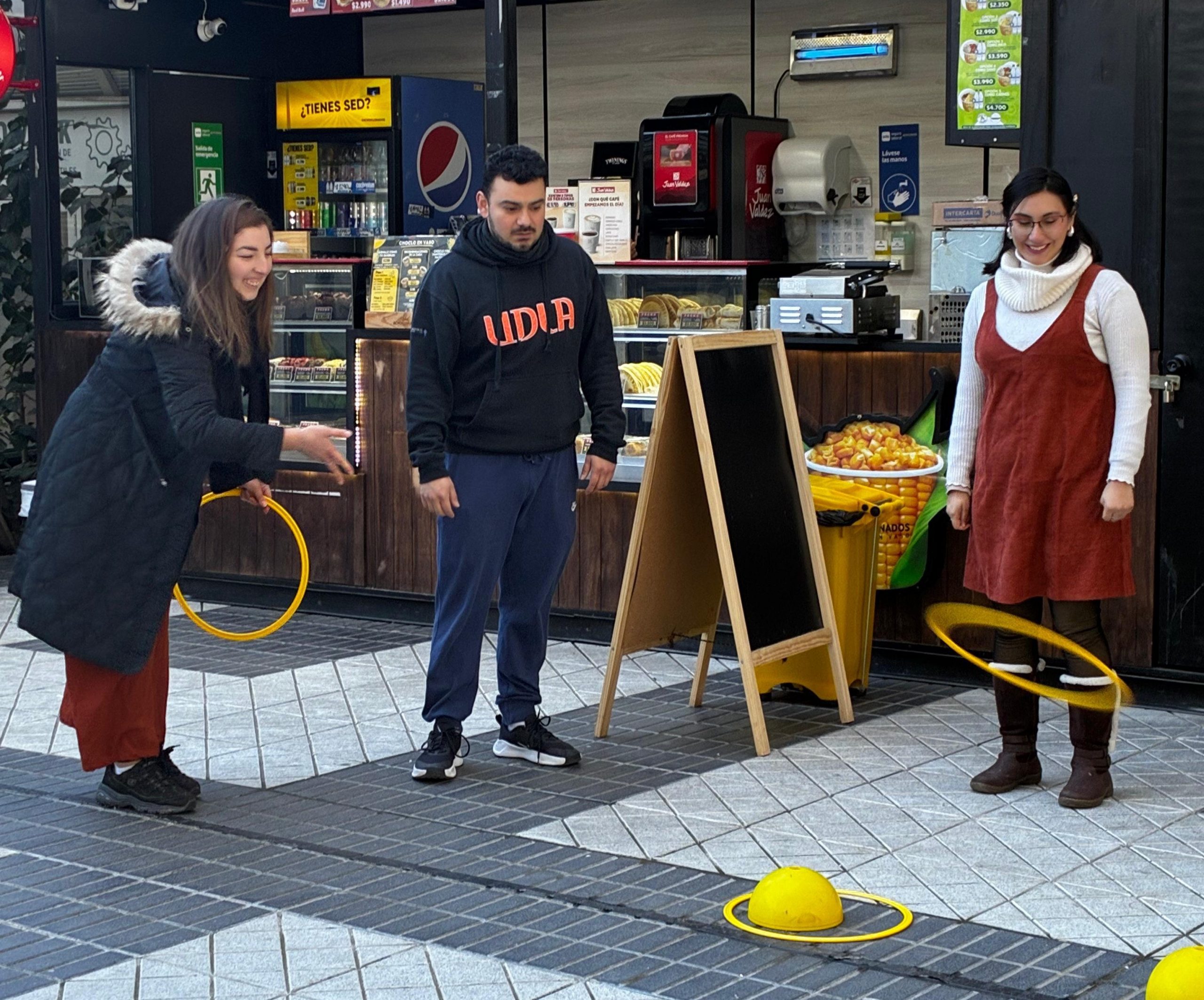 En tanto, Ninett Torres, también de Psicología Executive, sostuvo que “me parece que las instancias que se dan en el patio con las actividades de juego y desafíos nos sacan un poco de la estructura y nos ayuda a subir el ánimo y estar más activos. También ayudan e invitan a generar vida universitaria entre los estudiantes desde el dinamismo”.