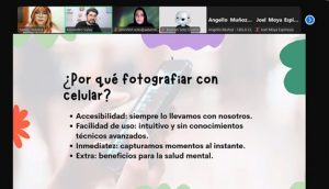 Por su parte, Alejandro Salas, psicólogo y organizador del taller, destacó: “El propósito es entregar nuevas formas de sacarle el máximo provecho a las herramientas de nuestro smartphone, ya que fotografiar objetos, personas o paisajes nos permite contar historias de manera creativa. Esperamos a futuro recibir muchas fotografías de nuestros estudiantes para realizar una exhibición virtual en nuestras redes sociales y conocernos un poco más.”
