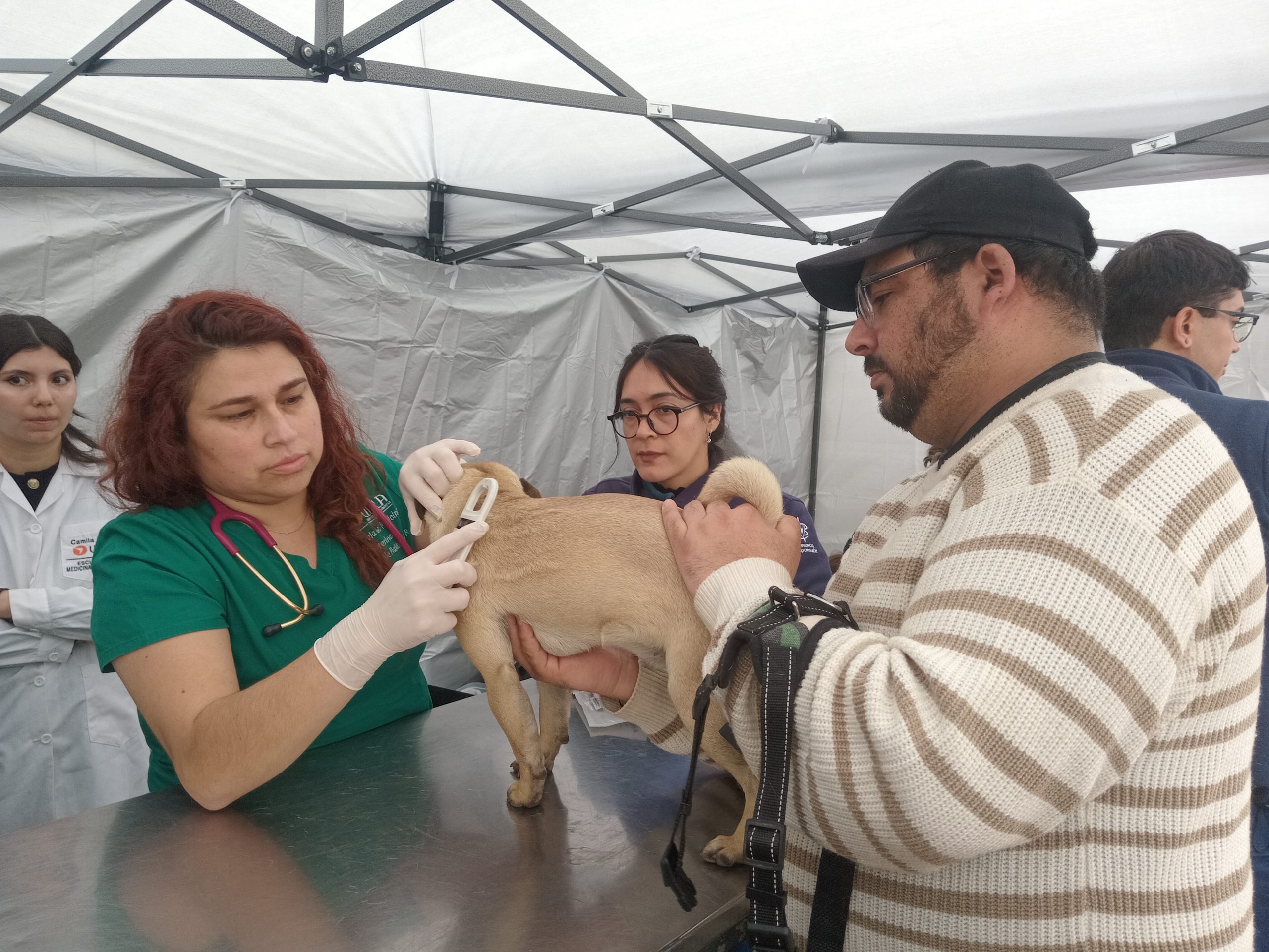 Camila Cid, estudiante de primer año, comentó que esta fue su primera experiencia en actividades prácticas fuera del aula. “Estas actividades son muy provechosas. Aprendemos mucho participando. Fue mi primera vez implantando un microchip y tanto los doctores como la gente fueron muy amables y comprensivos. Estas instancias son valiosas para los tutores, que pueden acceder a atención gratuita, y también para nosotros, porque nos permiten aprender y relacionarnos con los animales, que es lo que más nos motiva”.