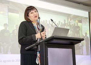 Durante la jornada, Patricia Esparza, Secretaria Académica de la Escuela de Ingeniería Comercial, también se dirigió a los ex estudiantes, resaltando la diversidad de generaciones representadas en la actividad. “Tenemos ex estudiantes desde el año 2006 en adelante, trabajando en diferentes sectores y trayectorias. Nos alegra ver cómo se reúnen representantes de distintas promociones, lo que refleja la riqueza y amplitud de nuestra comunidad”, afirmó. Asimismo, subrayó que la escuela siempre está disponible para acoger con cercanía a sus titulados, fortaleciendo los lazos entre ellos y la institución.