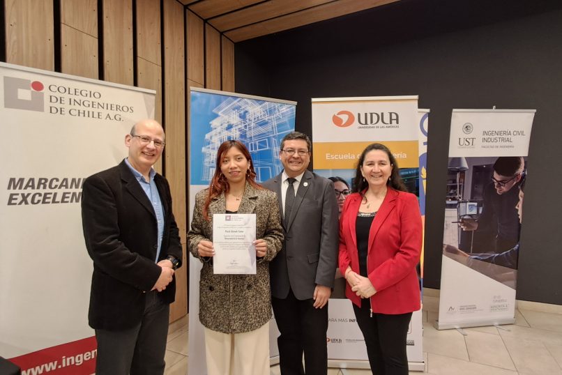 En el marco del Día de la Ingeniería Industrial, Paola Quinde, estudiante de cuarto año de Ingeniería Civil Industrial de la Facultad de Ingeniería y Negocios de Universidad de Las Américas, fue distinguida por su excelencia académica y aporte en la disciplina durante una ceremonia de reconocimiento organizada por el Colegio de Ingenieros de Chile.