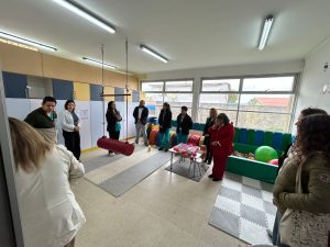 Sobre el trabajo realizado, Pacheco explicó que los estudiantes, considerando la gran cantidad de niños y niñas con Trastorno del Espectro Autista (TEA), decidieron implementar una sala de intervención sensorial completamente equipada. Para ello instalaron un piso de goma eva, espejos y cuñas destinadas al trabajo de lateralidad y esquema corporal, un vestibulador en rodillo para estimular el sistema vestibular, una piscina de pelotas y diversas cajas con juegos, actividades y texturas. Además, habilitaron sillas y mesas para apoyar el trabajo junto a las terapeutas.