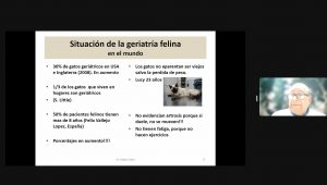 La primera charla fue dictada por el Dr. Rubén Gatti, especialista en geriatría felina, quien explicó los cuidados, diagnósticos y tratamientos que requieren los gatos a partir de los 10 años, etapa en la que se concentran múltiples patologías crónicas. El académico hizo un llamado a la detección temprana y a la observación detallada de los cambios de conducta y peso. “Un gato que no tiene signos clínicos no significa que esté sano, puede ser solamente asintomático y tenemos que anticiparnos a las enfermedades. El 90% de los gatos de 12 años en adelante tienen osteoartritis, pero muy pocos son diagnosticados porque no evidencian el dolor”, advirtió.