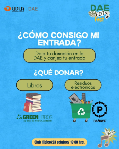 El evento se realizará en el Club Hípico el día 23 de octubre entre las 15:00 y las 21:00 horas, y reunirá a los cinco campus de la sede con stands de emprendedores verdes, concursos, dinámicas, una batucada de bienvenida y la colaboración de las fundaciones Punto Limpio, Pañiwe y Green Libros. Las entradas se obtendrán mediante una donación sustentable de libros, tapitas plásticas o artículos electrónicos en desuso.