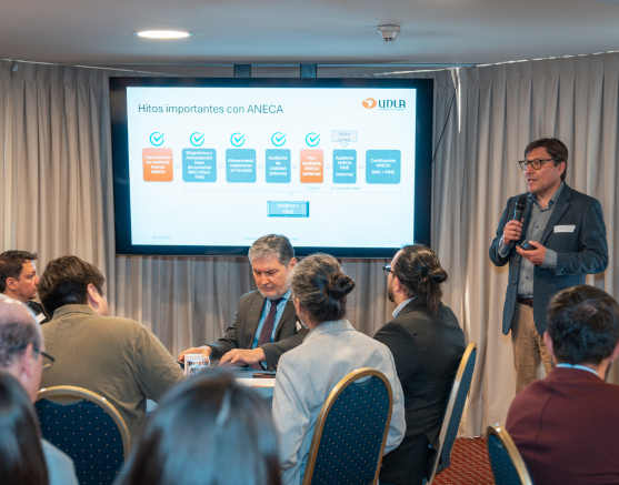 La jornada tuvo como tema central la “rendición de cuentas”, abordando los avances y desafíos en los ámbitos de docencia, calidad, investigación, Vinculación con el Medio, egresados y empleadores, y educación continua, todos aspectos estratégicos en la preparación hacia la próxima certificación internacional con ANECA.