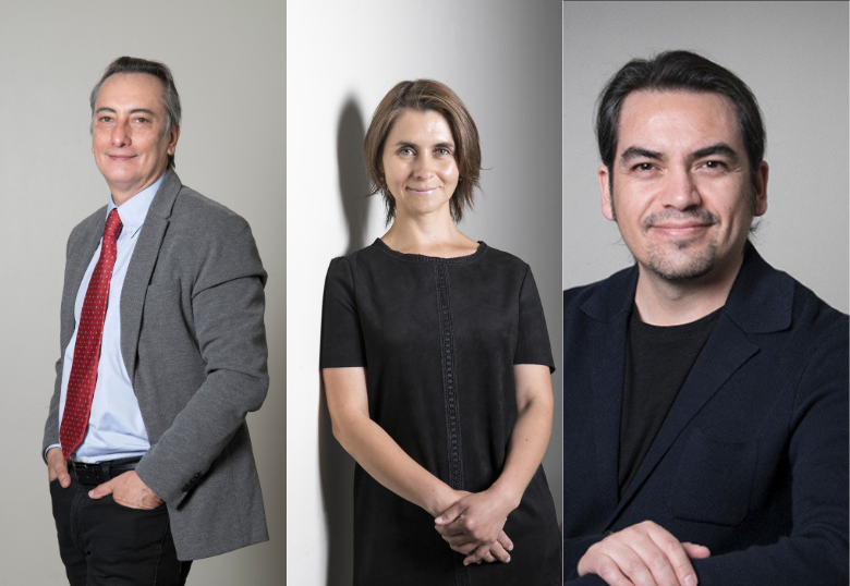 Osvaldo Artaza, Decano Facultad de Salud y Ciencias Sociales; Leslie Landaeta, Directora del Nincal y Julián Reyes, coordinador de Postgrado