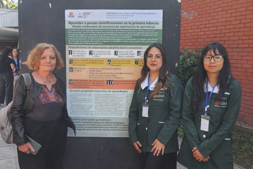 En la instancia, las estudiantes de octavo semestre Isabel Bravo y Alin Bustos, junto a la académica Patricia López Stewart, presentaron el póster “Aprender a pensar científicamente en la primera infancia”, el pasado 14 de octubre.