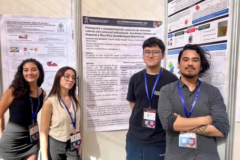 Académicos y estudiantes de la Escuela de Nutrición y Dietética de UDLA presentaron investigaciones en formato oral y póster, resultados de proyectos desarrollados de manera colaborativa entre docentes y alumnos.