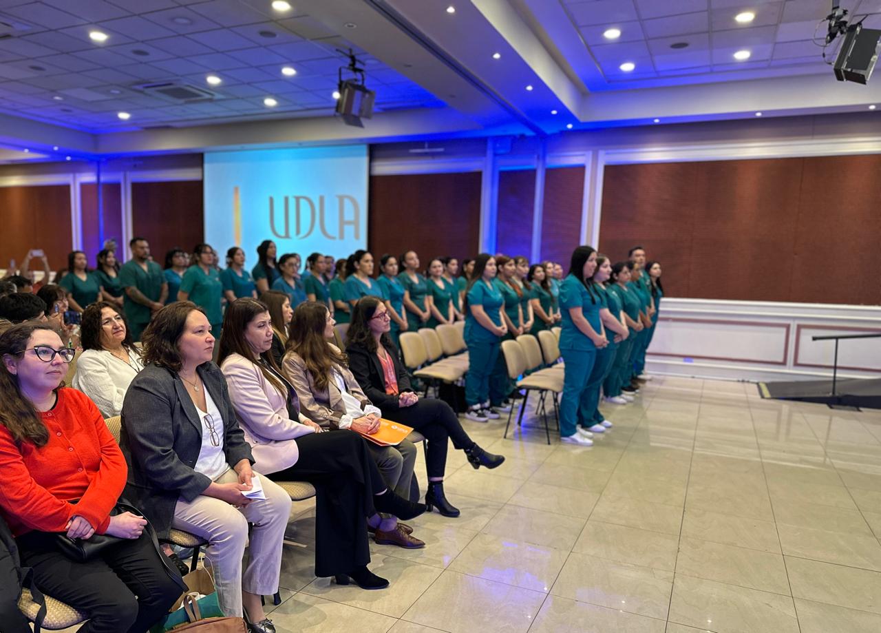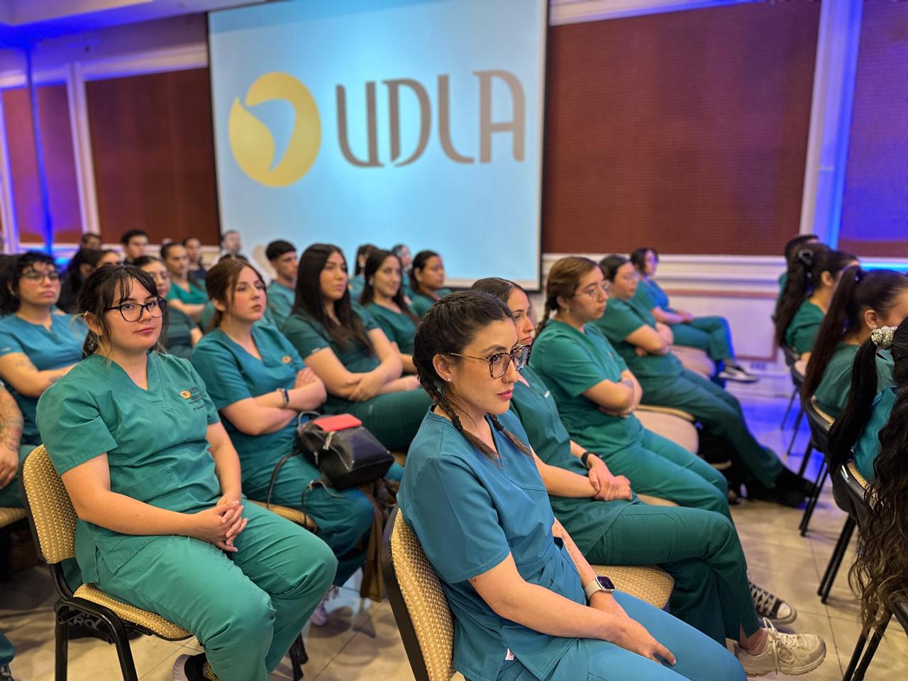 La actividad, realizada en el Aula Magna UDLA Sede Santiago, reunió a estudiantes que actualmente cursan su práctica intermedia, junto a familiares, académicos y autoridades de la Facultad de Medicina Veterinaria y Agronomía. Durante la jornada, los futuros profesionales realizaron su compromiso de actuar con integridad, responsabilidad y vocación de servicio, tanto en sus prácticas como en el ejercicio futuro de la profesión.