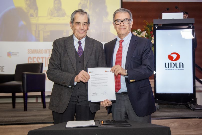 El seminario marcó un hito con la firma de una carta de intención entre Universidad de Las Américas y la Dirección de Educación Pública, orientada a fortalecer la cooperación académica y el desarrollo de investigaciones aplicadas en materia de gestión y pedagogía. “Para UDLA, el análisis de la educación pública y cómo desde la investigación y la formación podemos contribuir a mejores resultados, es un compromiso permanente”, agregó el Vicerrector Vatter.
