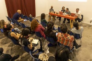 Como parte del programa público de la exposición Ensamblajes Naturoculturales en el Centro Cultural España, se realizó una apertura de proceso de la Residencia Zoomancia del Núcleo Lenguaje y Creación. La instancia permitió compartir los registros, hallazgos y preguntas surgidas a partir del viaje de investigación que el equipo del núcleo y el residente, Sebastián Arriagada, realizaron al norte de la Patagonia.