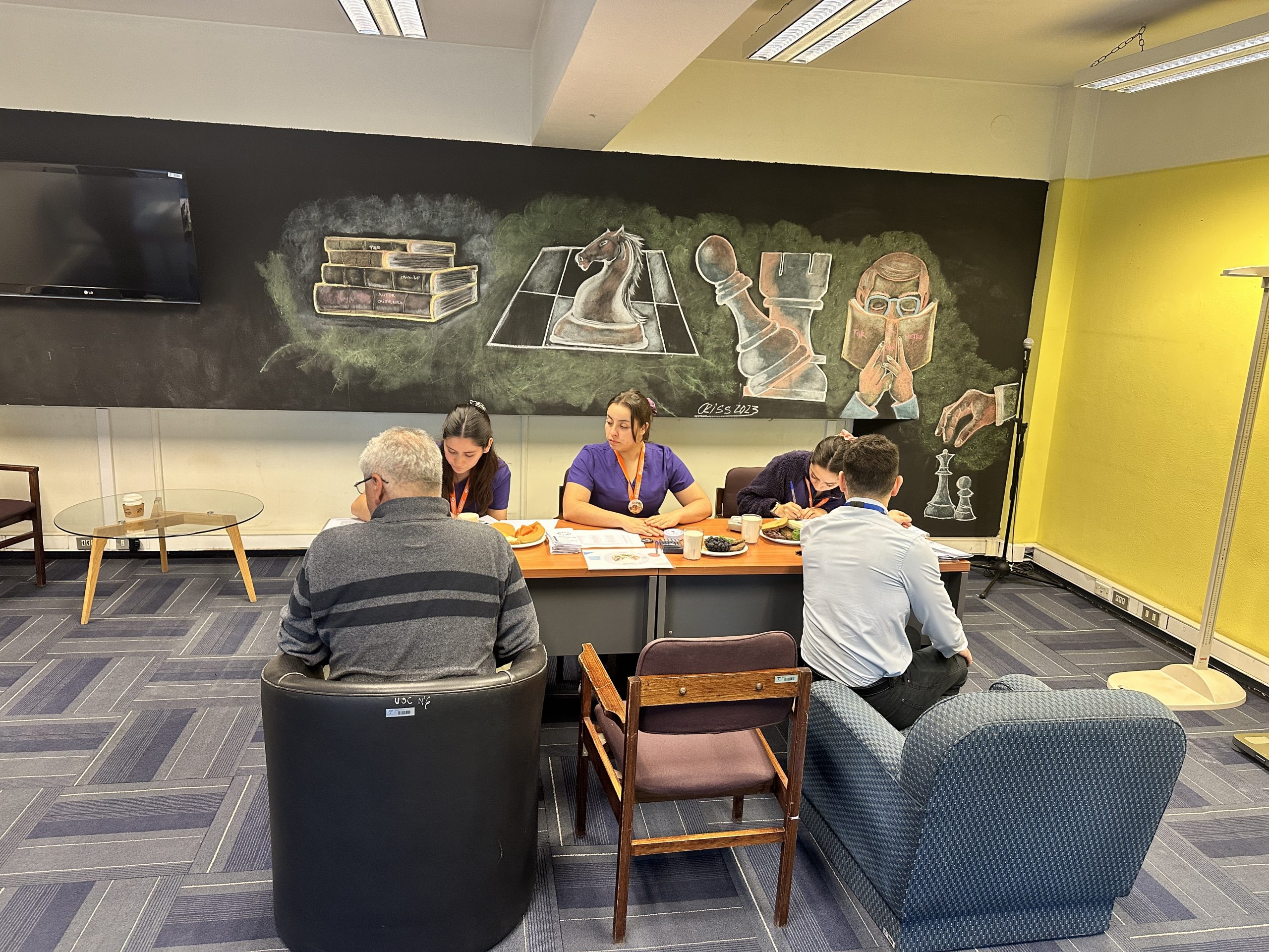 Participaron 14 personas —hombres y mujeres entre 25 y 70 años— quienes recibieron orientación alimentaria, recomendaciones de porciones y material educativo para reforzar cambios de hábitos. Por parte de UDLA asistió la académica Francisca Rivas Zambrano, junto a los internos Camila Carrillos, Alejandro Cortés, Aramis López y Francisca Venegas. La académica señaló que “exponer el modelo CAN en la Tesorería General de la República fue una oportunidad para visibilizar cómo la práctica profesional puede articularse con la Vinculación con el Medio, transformándose en un aporte concreto a la formación de los estudiantes y a la salud de las comunidades”.
