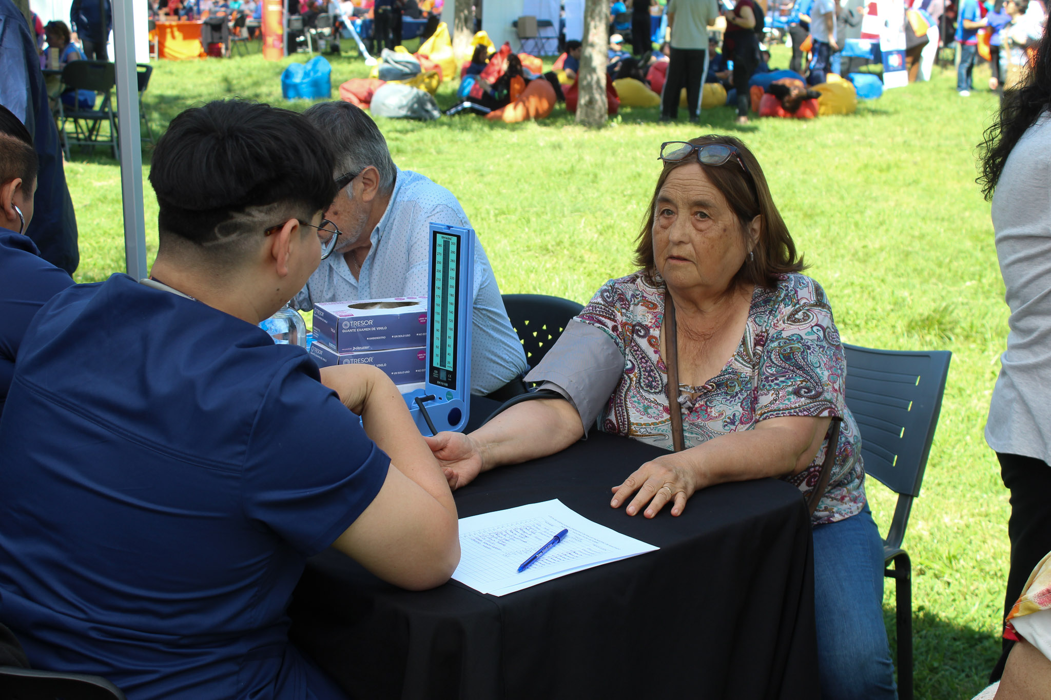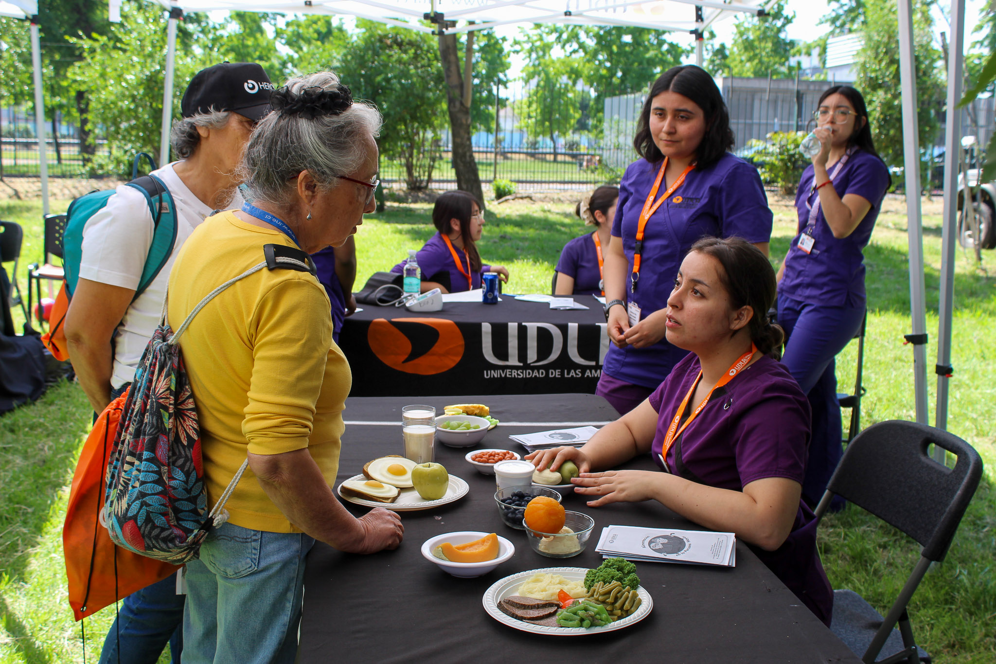 Los asistentes atendieron gratuitamente a través de stands de Kinesiología, Psicología, Terapia Ocupacional, Derecho, Licenciatura en Ciencias de la Actividad Física, Enfermería, Fonoaudiología y Nutrición y Dietética, integrando aprendizaje práctico con servicio real en terreno.
