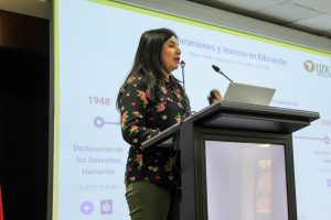 La jornada fue liderada por Tatiana Herreros, Directora de Carrera de Educación Diferencial, quien destacó que la capacitación “tiene foco en poder dar la bajada de la guía de inclusión, que está hecha como autoría por mí, en conjunto con el DAE, desde el programa de inclusión”, y que esto permite “saber cuáles son los ajustes razonables, de cómo implementarlo en el aula de clases, de verlo como una necesidad propia del estudiante y del derecho a una educación de calidad”.
