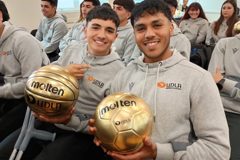 Asimismo, se reconoció a estudiantes que durante 2025 representaron por última vez a UDLA competencias regionales, al encontrarse en el último año de su carrera. Recibieron este reconocimiento Diego Huerta y Simón Ortúzar, de Fútbol Varones, y Martina Peña, de Voleibol Damas.