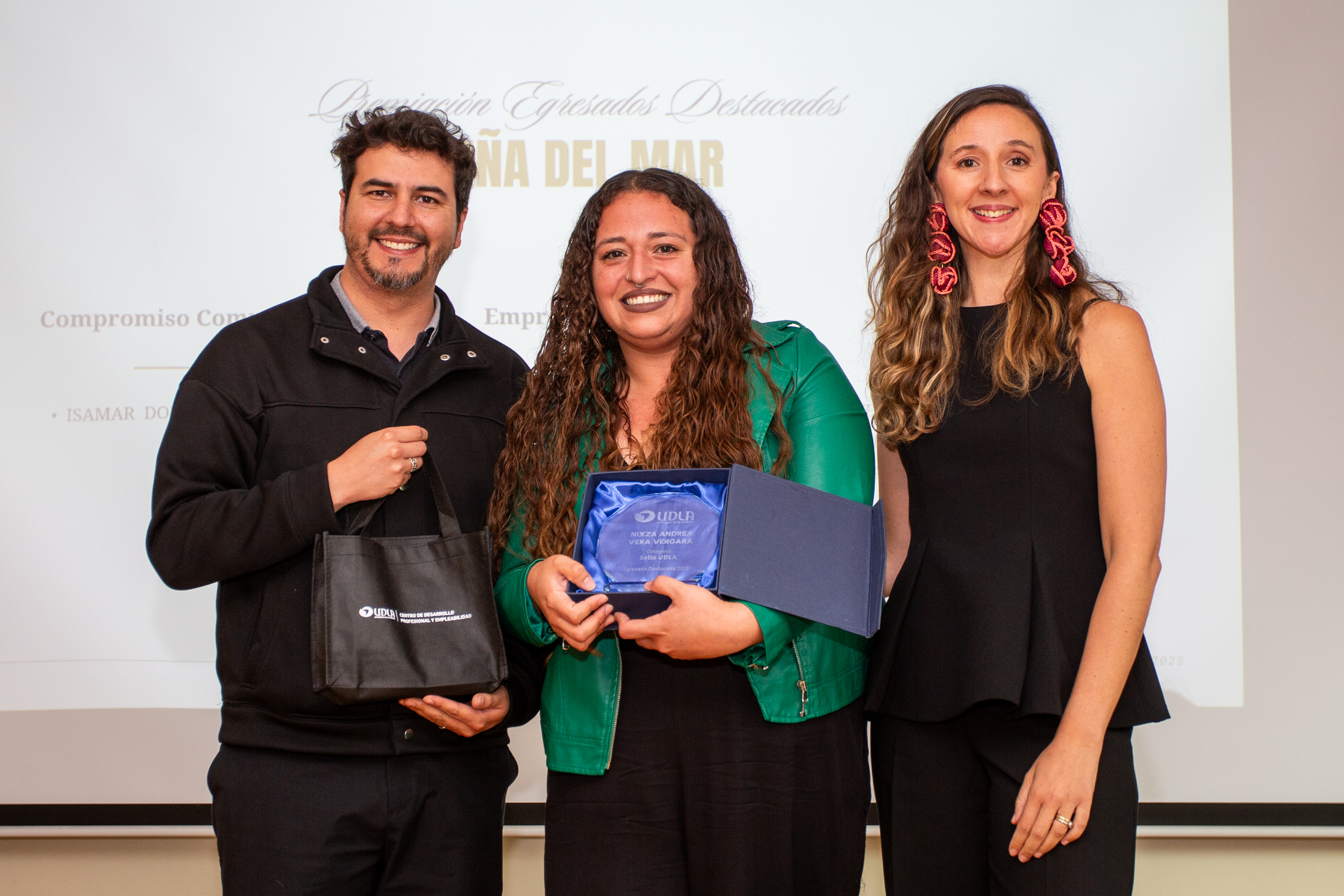Cinco tituladas de Sede Viña del Mar fueron premiadas en la Ceremonia de Egresados Destacados organizada por el Centro de Desarrollo Profesional y Empleabilidad de UDLA, instancia orientada a reconocer trayectorias y aportes a la sociedad desde distintos ámbitos de desempeño.
