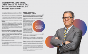 Entre sus contenidos, destaca una entrevista con el Vicerrector Académico, Jaime Vatter, quien detalla los principales pilares del Proyecto de Innovación Curricular (PrIC): “El escenario que impulsa el PrIC está marcado por los desafíos acelerados que enfrenta la educación superior en la actualidad. Observamos una realidad con un mercado laboral cambiante y exigente, impulsado por el desarrollo tecnológico y, notablemente, por la irrupción de la Inteligencia Artificial (IA). Además, existen mayores exigencias en materia de inclusión, equidad y sostenibilidad. Nuestro objetivo es claro: formar personas con un sello único que puedan desenvolverse en este mundo mediante un diseño curricular flexible y pertinente”.