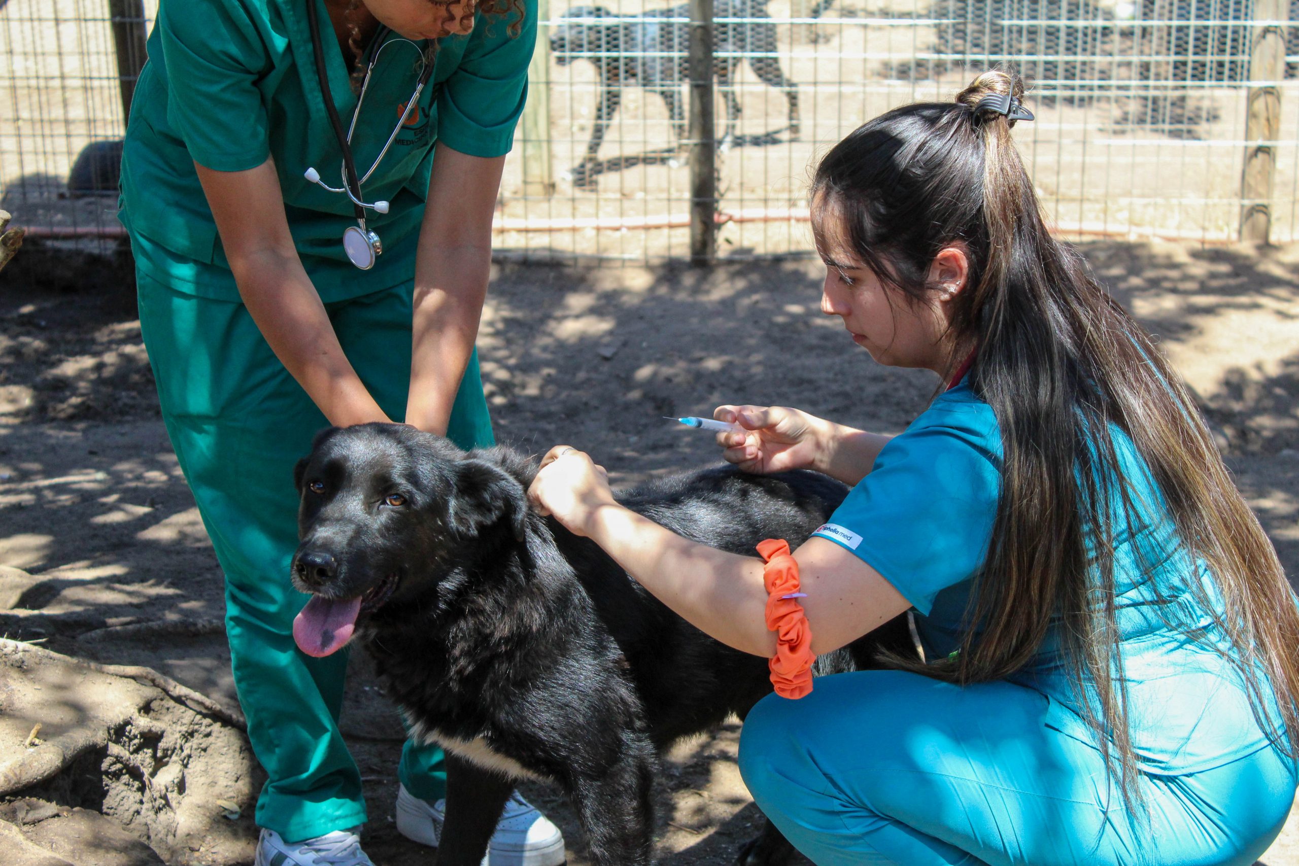 Estudiantes de la carrera de Medicina Veterinaria del Campus La Florida participaron en un operativo sanitario desarrollado en el refugio de la Fundación Ayuda Callejeros, instancia de Vinculación con el Medio que permitió la atención de aproximadamente 90 perros rescatados.